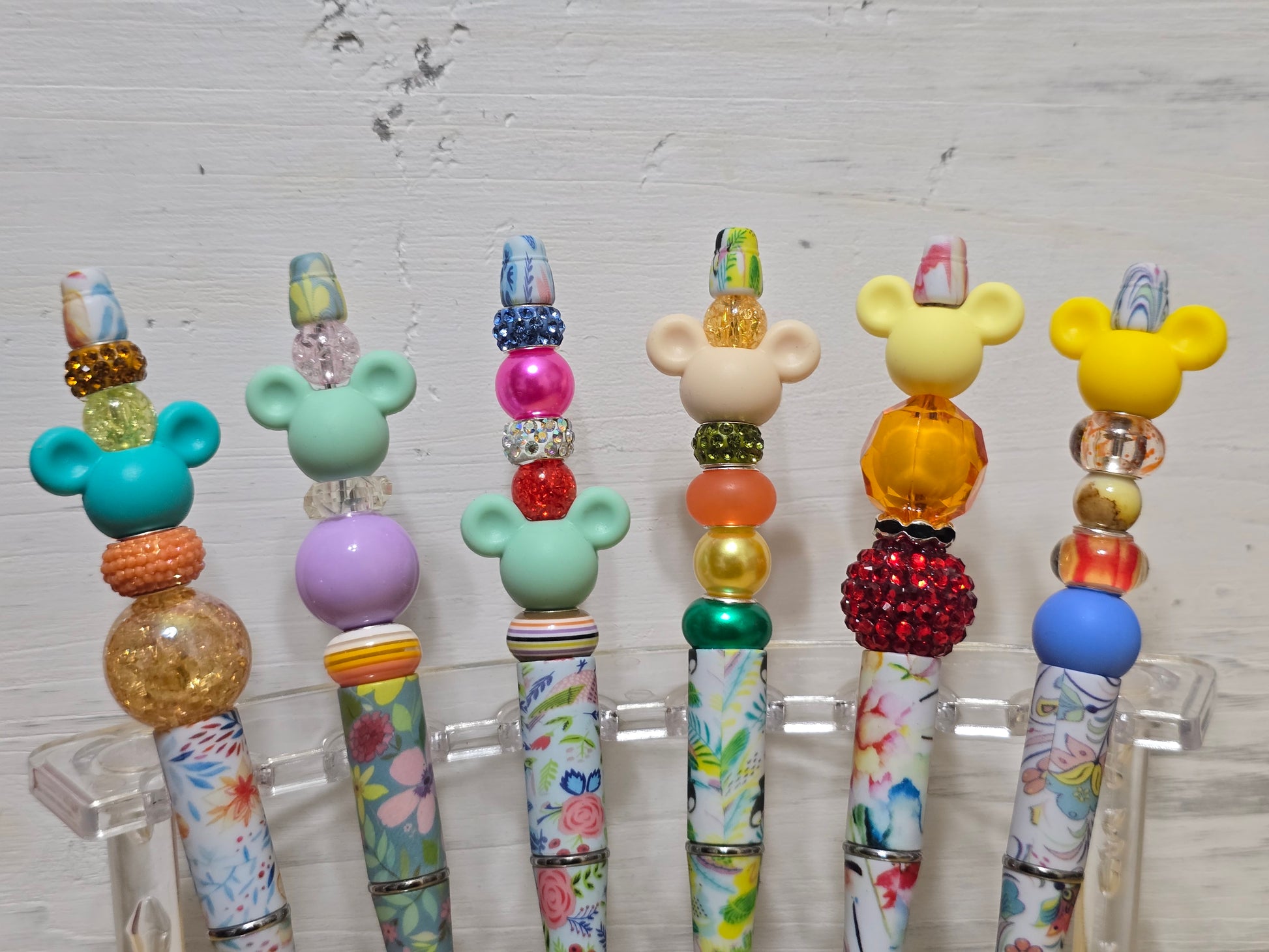 Homemade pens with mouse charm. Different style bases for all pens. Refillable pens